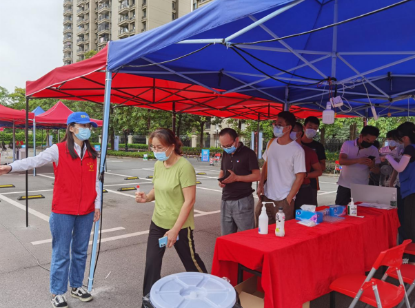 事实上,志愿者阿川的经历只是梦之城CITY OF DREAMS鼎力支援宏盈工业园区全民核酸检测大筛查行动的一个缩影。同心抗疫,爱心接力,连日来,梦之城CITY OF DREAMS党员、团干、志愿者们闻讯而动,踊跃参与到疫情防控工作之中,采取执勤轮换的方式全力保障入口扫码信息登记、健康码核验、体温检测、流程引导、信息录入、核酸采样等各个环节正常运行,为抗疫一线工作人员构筑起坚实“后盾”,解决他们的后顾之忧。